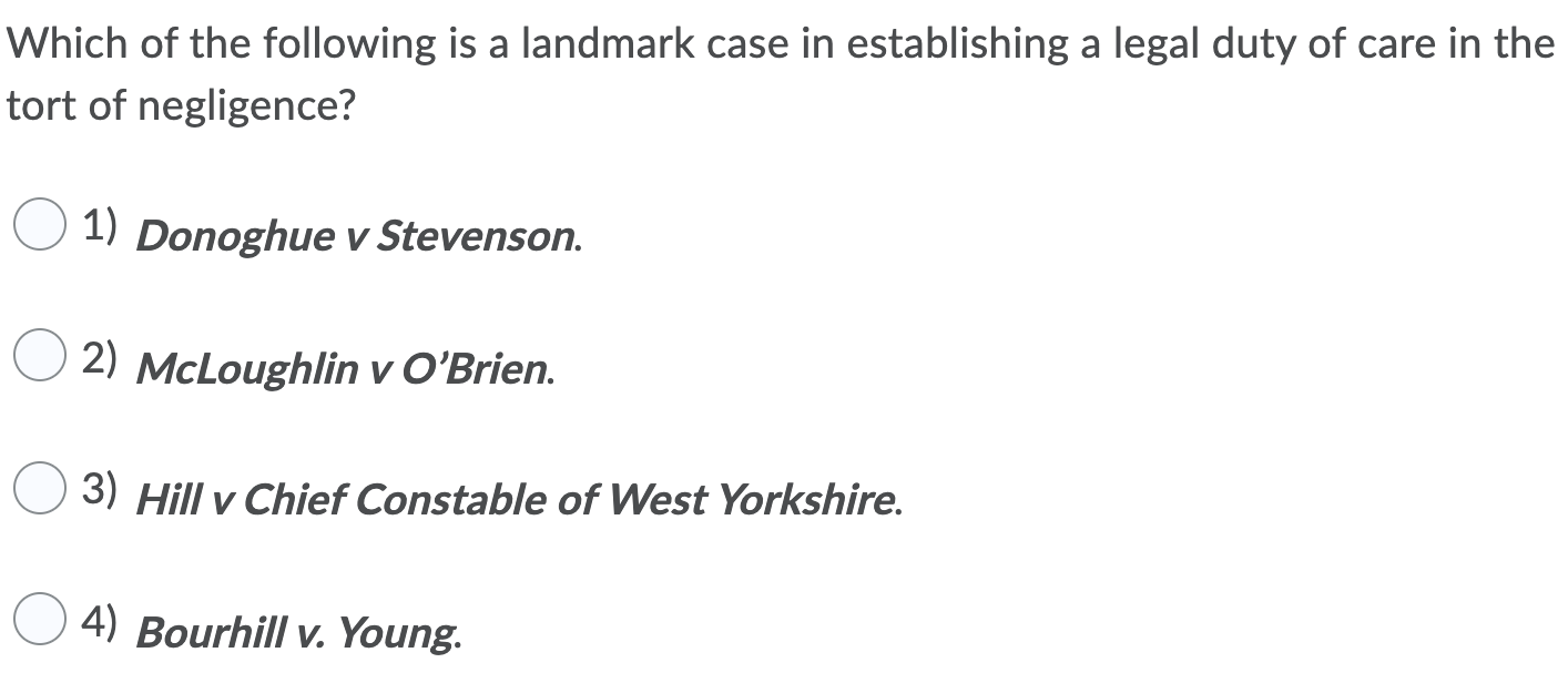 Solved Which Of The Following Is A Landmark Case In Chegg Com